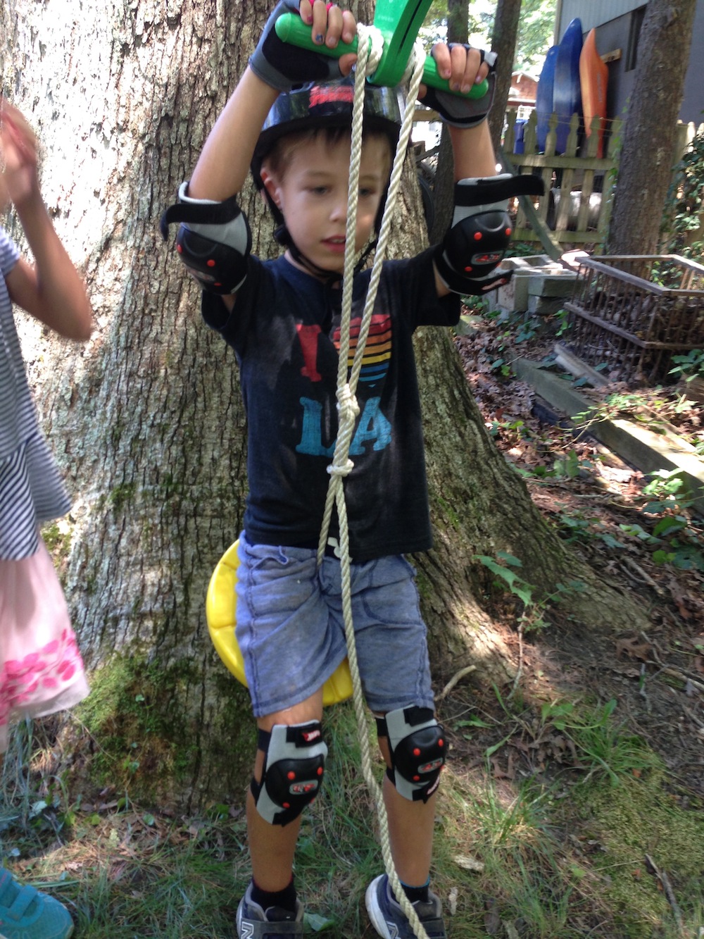 …A lot like being a camp counselor. I spend a lot of time teaching my kids how to ride their bikes or swim. For most of our activities, the kids need to wear protective helmets. In the afternoons, I try to keep them from launching frogs off of homemade catapults.