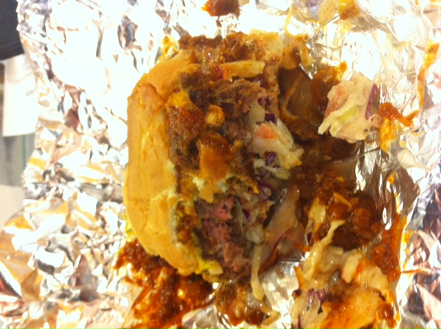 I’m in day two of this Meat Odyssey. Let me describe how it’s gone so far. Wake early, hit the treadmill, drive two hours to a diner in the middle of nowhere, eat a burger with cheese, chili, slaw, get back in the car to drive two hours to an uber-hip gourmet burger place where they put things I can’t even spell on top of their burgers, then run across the street to an old school bar that’s been doing burgers a certain way for 20 years, then back in the car for a two hour drive…